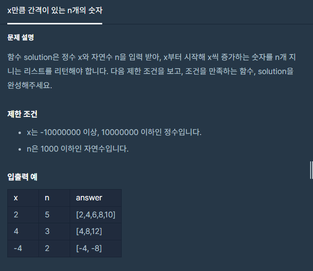 [프로그래머스] x만큼 간격이 있는 n개의 숫자 -JS 본문