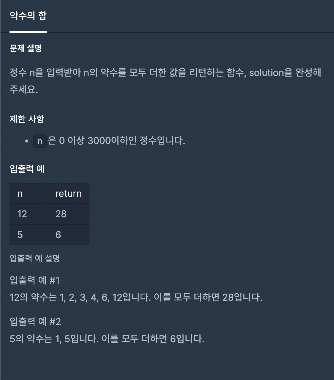 [프로그래머스] 약수의 합 - JS 본문