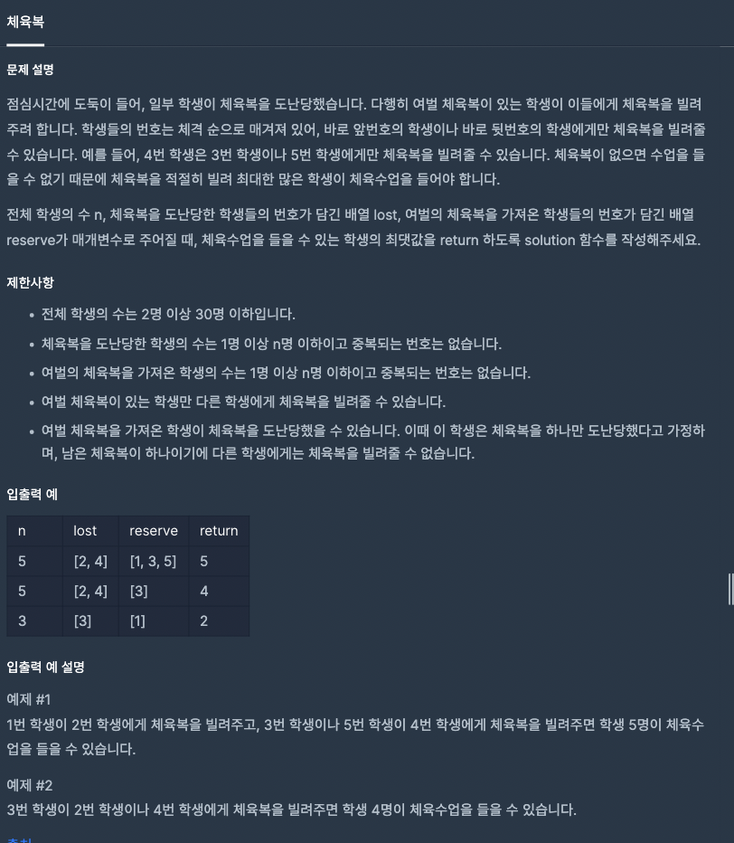 [프로그래머스] 체육복 -JS 본문