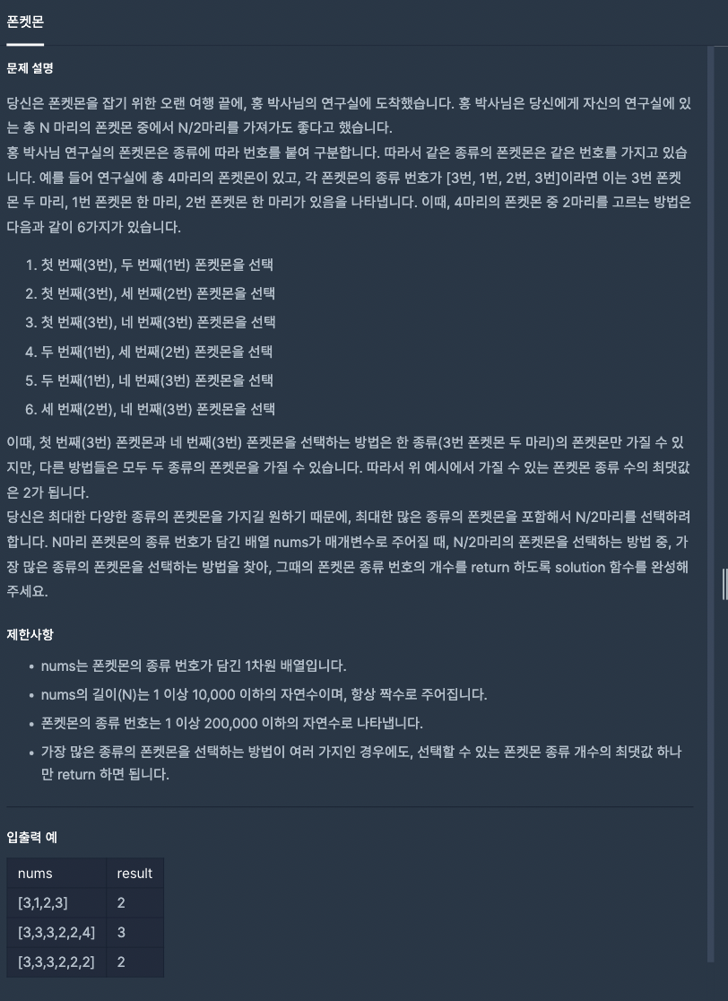 [프로그래머스] 폰켓몬 -JS 본문
