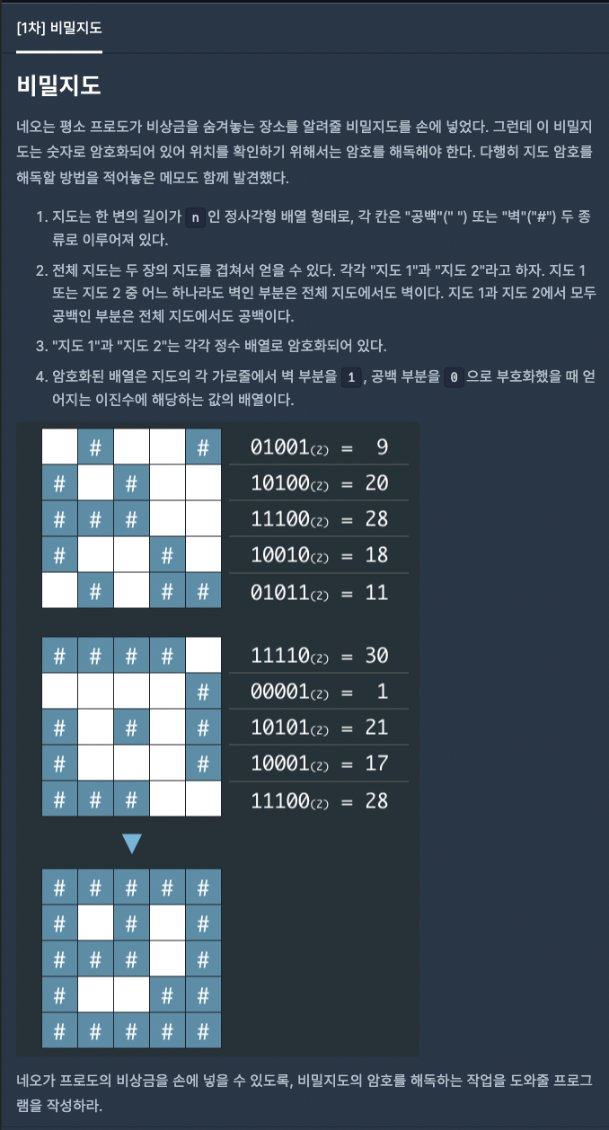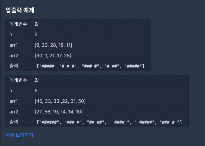 3. 같은 자리의 2진수 요소들을 비교하여 둘다 0인 경우에는 공백 추가 나머지는 #추가