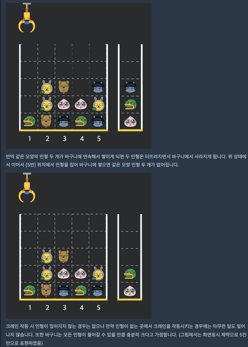 [프로그래머스] 크레인 인형뽑기 -JS 본문