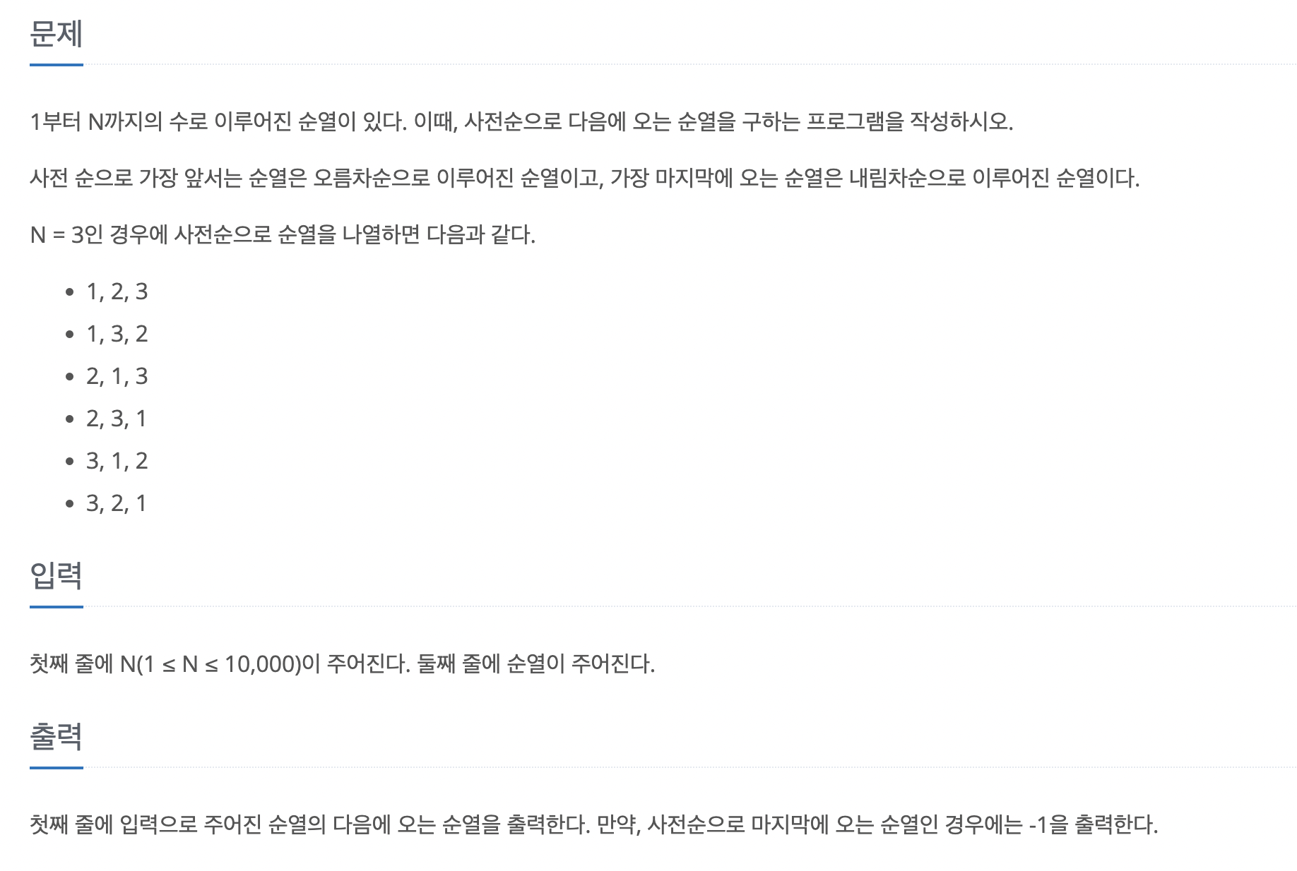 [백준] 다음 순열 10972번 - Javascript / Node.js 본문