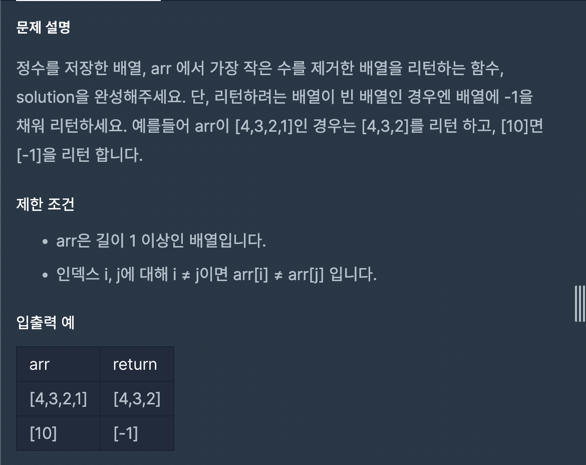 [프로그래머스] 제일 작은 수 제거하기 -JS 본문